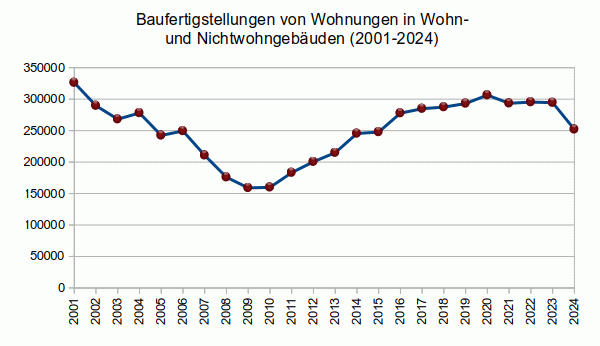 Westdeutschland mehr Wohnungen fertiggestellt als in den