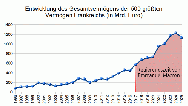 | Archiv | Impressum 11. Oktober 2025, von Michael Schöfer Macron hat abgewirtschaftet Frankreich befindet sich zweifellos in einer schwerwiegenden politischen Krise, aber darüber wird bei uns leider sehr einseitig berichtet, was wiederum Ursache der weitverbreiteten Verständnislosigkeit ist. "Drastische Sparmaßnahmen stehen an, um den hohen Schuldenberg Frankreichs in den Griff zu kriegen. Sollte dies nicht gelingen, droht Frankreich, noch tiefer in die Schuldenkrise zu rutschen", schreibt etwa tagesschau.de. [1] Mit "Sparmaßnahmen" sind natürlich Einschnitte im Sozialbereich gemeint. Was hierzulande fast völlig ausgeblendet wird, ist jedoch die schier unerträgliche Kluft zwischen Arm und Reich. Warum eigentlich? Warum sind die deutschen Medien blind für die Vermögensexplosion der Schlossbesitzer und Penthouse-Bewohner, während sie im gleichen Atemzug den weniger Begüterten empathielos empfehlen, den Gürtel gefälligst enger zu schnallen? Laut Eurostat sind die Realeinkommen in der Amtszeit von Macron zwischen 2017 und 2024 um 3,12 Prozent gesunken. [2] Das Vermögen der Reichen erlebte hingegen einen enormen Wachstumsschub. Das Gesamtvermögen der 500 reichsten Franzosen ist zwischen 2017 und 2025 von 571 Mrd. Euro auf 1.128 Mrd. Euro gestiegen und hat sich damit nahezu verdoppelt (seit 1996 sogar vervierzehnfacht). Aber gespart werden soll natürlich bei den unteren und mittleren Einkommensbeziehern, die in den oberen Etagen der französischen Gesellschaft dürfen weiterhin Champagner trinken. ![]() Vor diesem Hintergrund kann man doch die Wut der Franzosen leicht nachvollziehen. Und es ist genauso verständlich, dass sie sich von der neoliberalen Politik ihres Präsidenten nicht länger veräppeln lassen wollen. Immanuel Macron, der Präsident der Reichen, hat buchstäblich abgewirtschaftet.